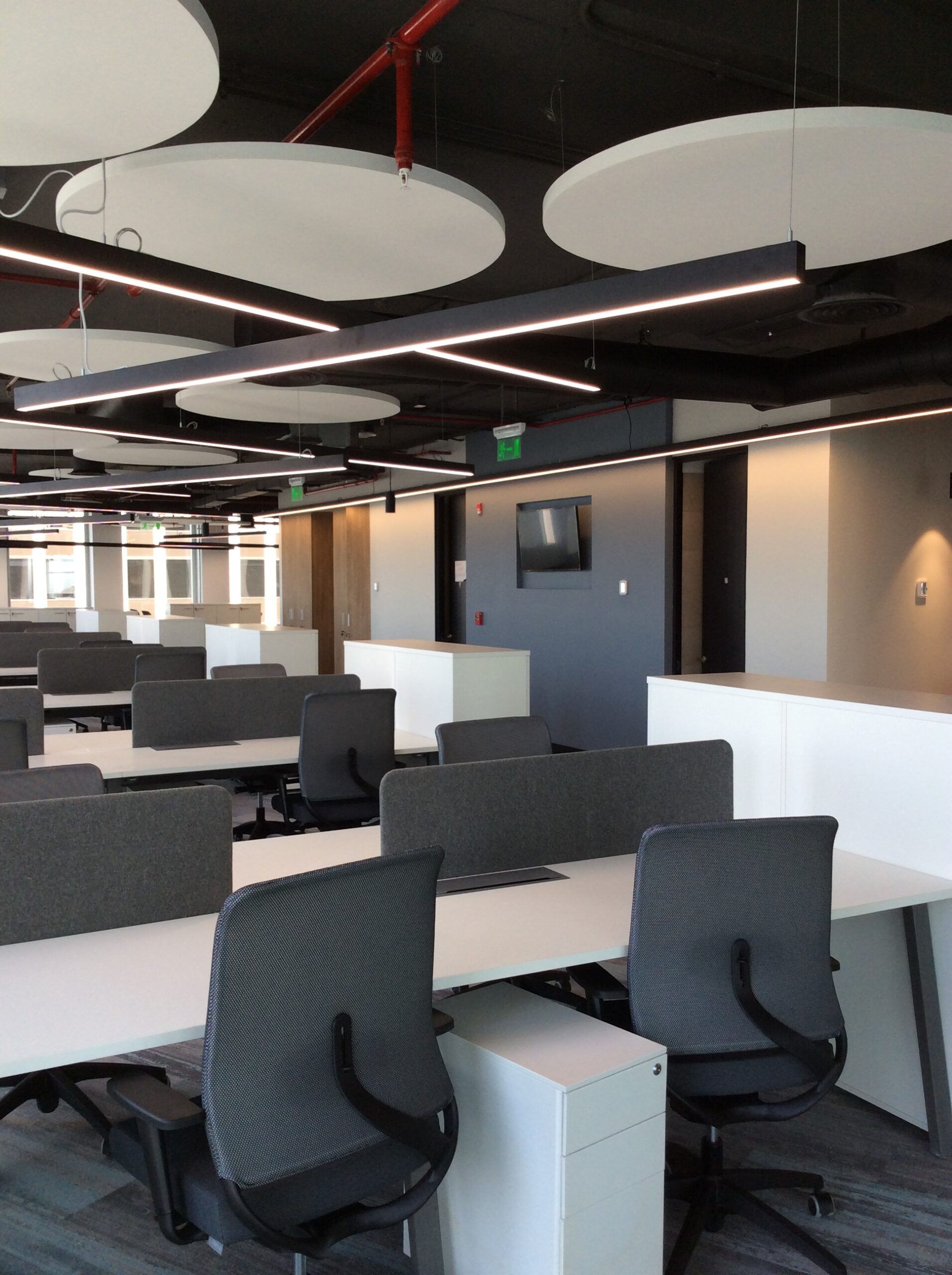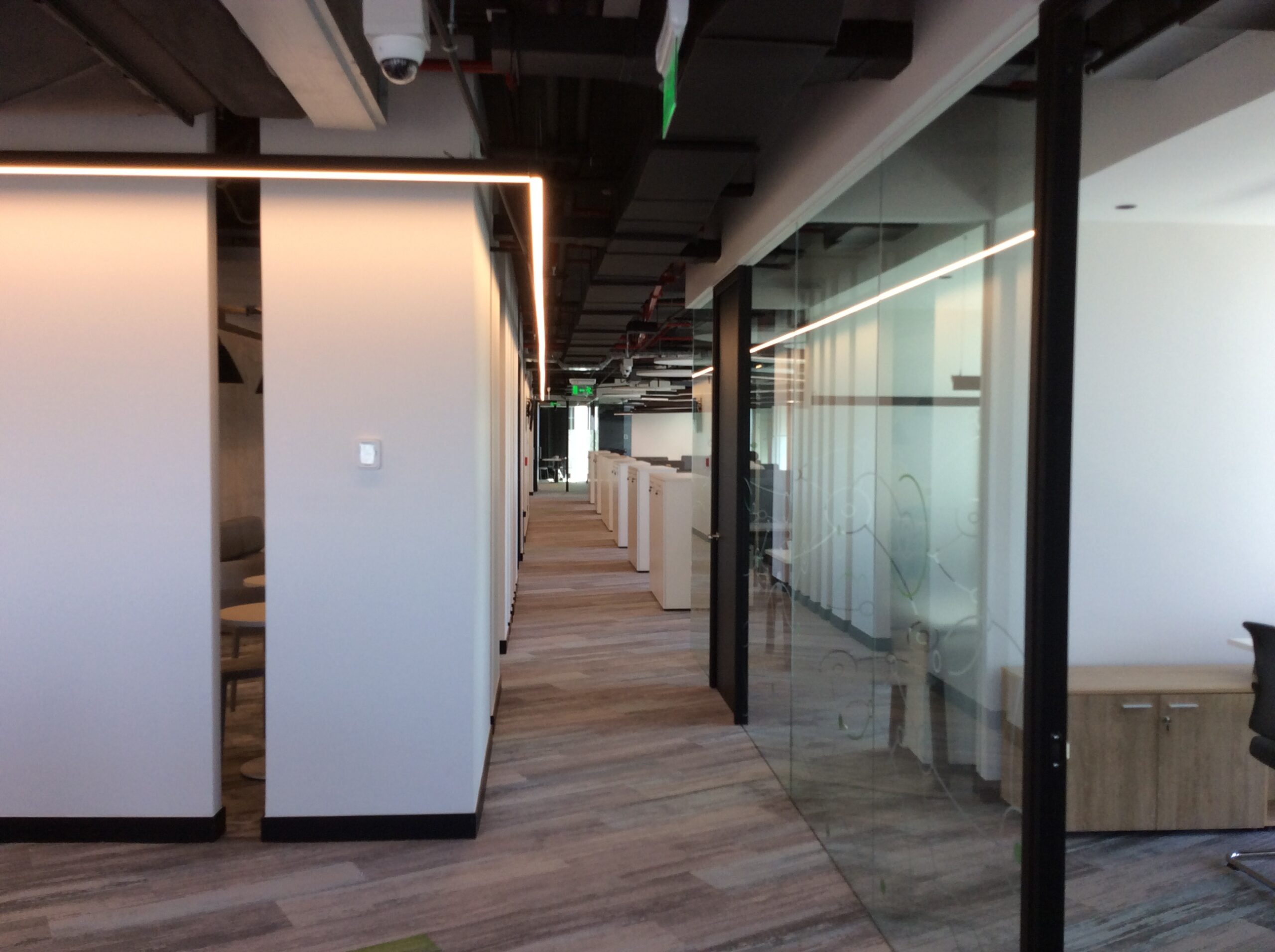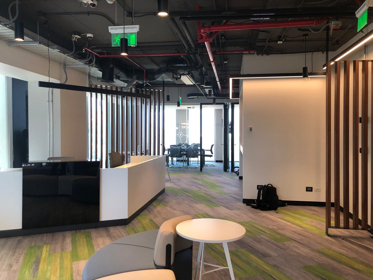 Proyecto de Arquitectura de interior y de habilitación de las nuevas oficinas de DCV Registros en el edificio de la Nueva Torre Santa María, pisos 23 y 24.